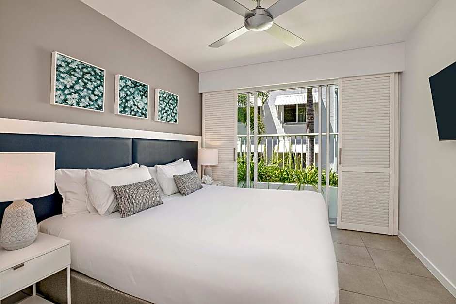 This air-conditioned suite features a private balcony with barbecue facilities. It also has a fully equipped kitchen, laundry and 2 bathrooms. Please note that this suite is made up of 1 Spa Suite and 1 One-Bedroom Suite, with a common entrance. Please note that this room will not be serviced during your stay. 500MB of WiFi and movies are included in the room rate.